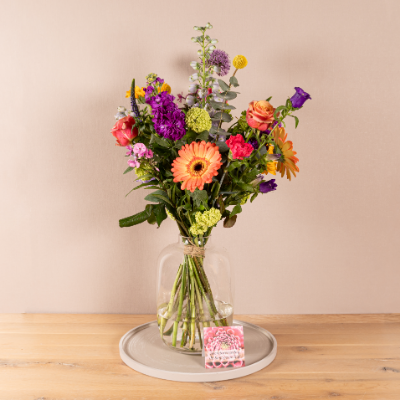 Paars, oranje en roze plukboeket